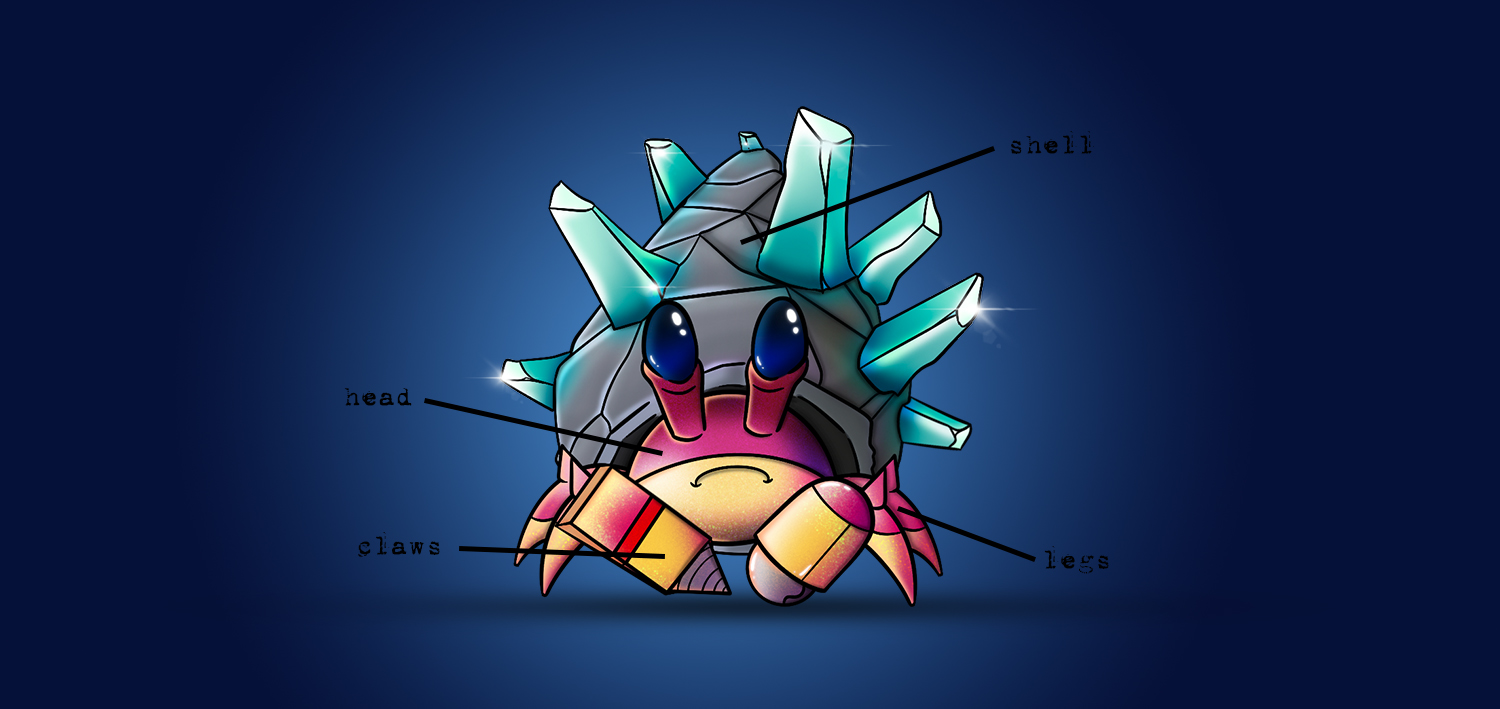 * **Head** *(Baby crabs: 25, Classic crabs: 15 & Cyborg crabs: 20)*